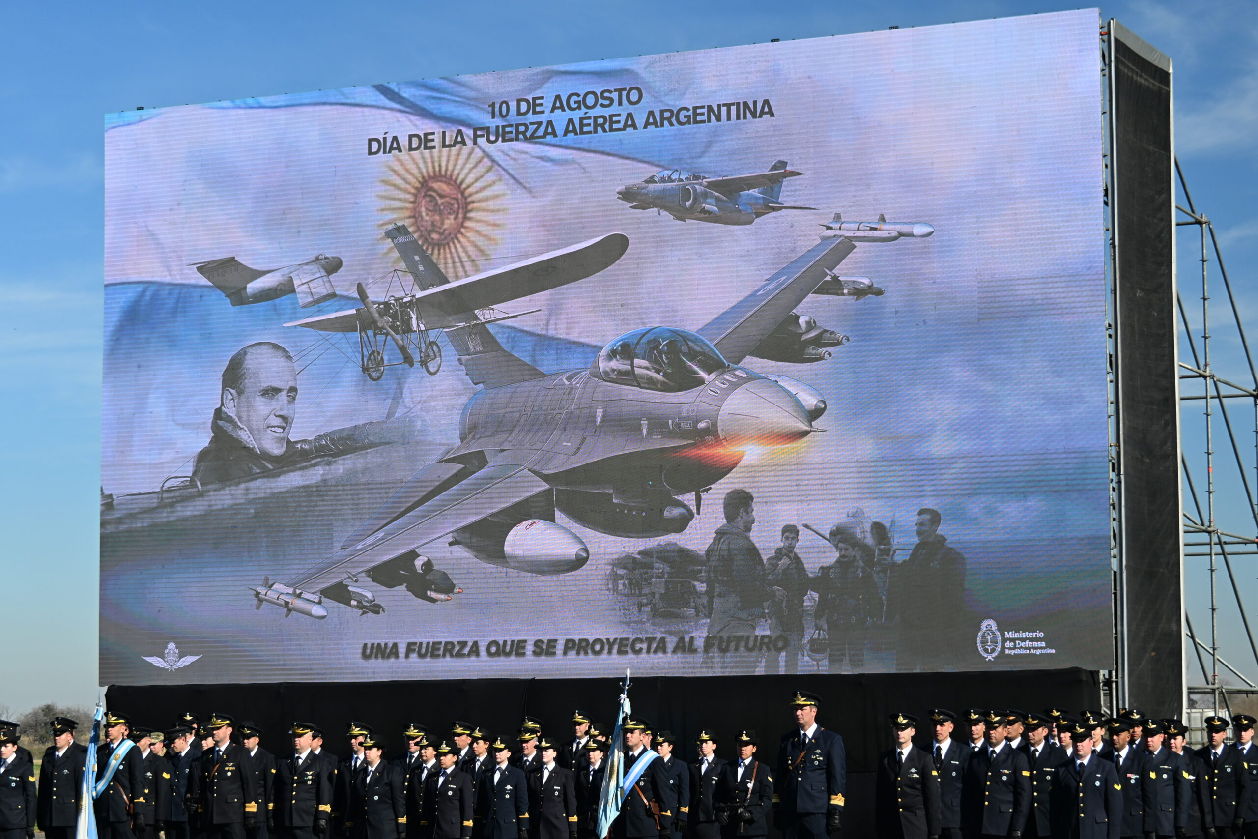 El pasado 10 de agosto se llevó a cabo en la BAM Morón , la ceremonia en conmemoración del 113° aniversario de la creación de la Fuerza Aérea Argentina .La misma estuvo presidida por el Ministro de Defensa Dr. Luis Petri , estando acompañado por el Jefe del Estado Mayor Conjunto Brigadier General Xavier Isaac ,los Jefes de los Estados Mayores Generales de la Fuerza Aérea , Armada y Ejército Brigadier Gustavo Javier Valverde, Almirante Carlos María Allievi y Teniente General Carlos Alberto Presti respectivamente. Al mismo tiempo se hallaban presentes en el acto los responsables máximos de la Fuerza Aérea de Brasil, Chile, Uruguay y el Inspector General de la Fuerza Aérea del Perú. También estuvieron presentes otras autoridades y ex jefes de la Fuerza Aérea, funcionarios del Ministerio de Defensa e invitados especiales entre otros.
