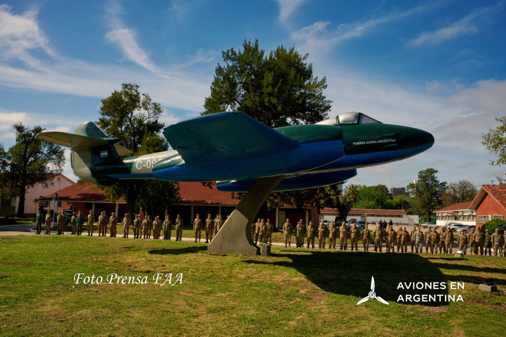 El pasado jueves 25 de septiembre de 2025, tuvo lugar la ceremonia de colocación del Gloster Meteor FMK IV, matrícula C-095 en el Comando Conjunto Aeroespacial Belisario Roldan. Presidió la ceremonia, el JEMFAA, Brigadier Gustavo Javier Valverde, acompañado por el JEMC, Brigadier General Xavier Julián Isaac, el CAA, Brigadier Aníbal Leiva, el General de Brigada Cristian Pablo Pafundi Comandante Operacional del EMCO, el SGFAA Brigadier Ricardo Capabianca y la presencia de personal de pilotos de Caza en general pero también entre ellos, los que tuvieron la oportunidad de volar este SARM, y como siempre Veteranos de Malvinas. Este avión se encontraba originalmente en la plazoleta de Avenida de los Inmigrantes frente al Edificio Condor – Estado Mayor de la Fuerza Aérea Argentina – CABA. En 1947 estos aviones fueron las primeras unidades de aviones a reacción de la FAA y una notable diferencia de velocidad con los aviones existentes en esa época. Sus pilotos lucían en sus buzos de vuelo el parche del “BOLIDO” y pañuelo blanco. Se crearon los Regimiento 4 y 6 de Caza Interceptora, Grupo 2 y 3 de Caza Interceptora, Grupo 2 y 3 de Caza Bombardeo, Escuadrón III del Grupo Operaciones VII hasta su disolución y radiarlos de vuelo el 29 de diciembre de 1970.