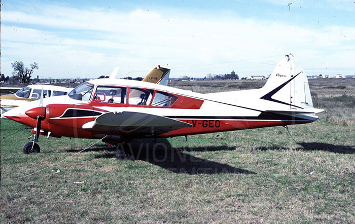 Foto El PA-23 LV-GEO recibió la conversión más conocida conocida como Seguin Gerónimo, que incorporaba motores Lycoming 0-360-A1D de 180 hp y di versas mejoras estructurales y aerodinámicas (proa más larga, aumento de superficie de la de riva, ventanillas mayores y traseras adicionales y otros detalles) Fotografiado en San Fernando en 1977 Foto Michael Magnusson