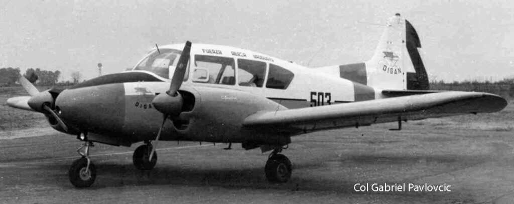 En oposición a los anteriores, uno de nuestros aviones pasó del servicio civil al militar. El Apache G LV-HNY fue incautado en 1980 en Uruguay por actividades ilícitas y en 1982 la Justicia de ese país lo entregó a la Fuerza Aérea Uruguaya, que lo incorporó con la matrícula FAU-503